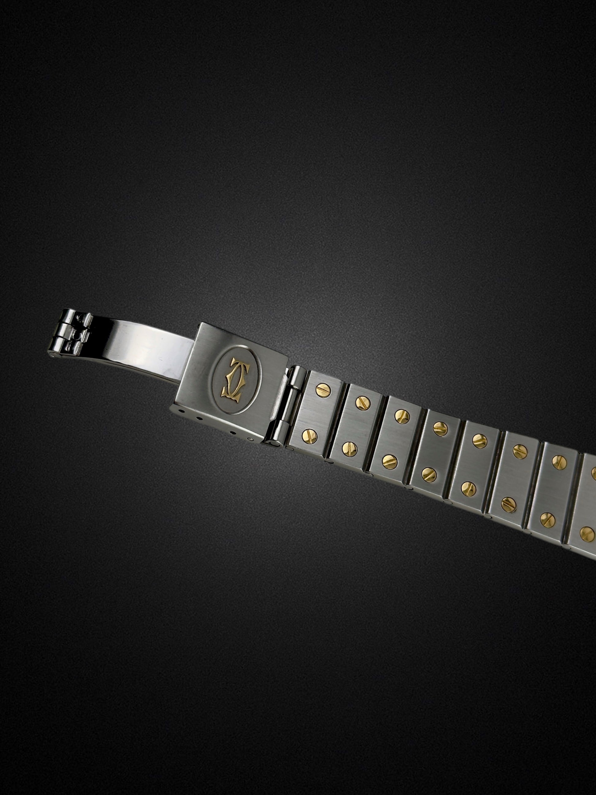 The Cartier Santos Burgundy ref. 2961 is a refined 29 mm steel and 18k yellow gold model distinguished by its original Burgundy dial, a rare and highly collectible variant within the Santos family. It features a sapphire crystal, a screwed yellow gold bezel, steel and gold bracelet with exposed screws and the signature cabochon crown, red on this version.